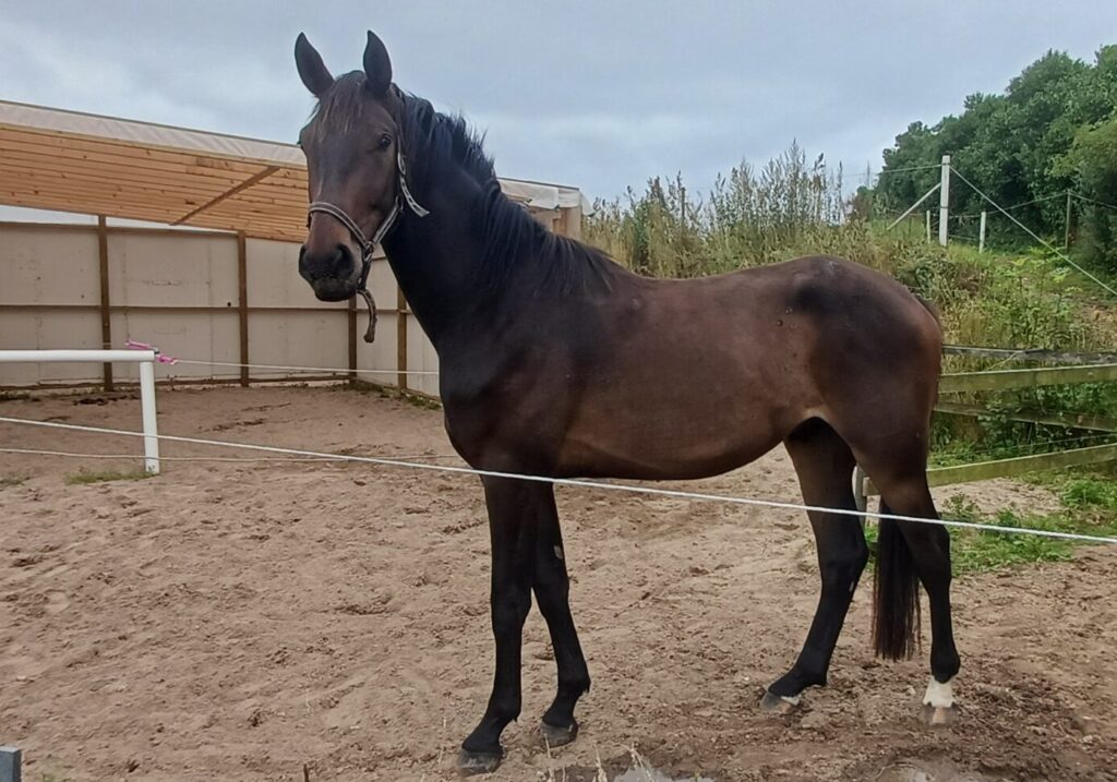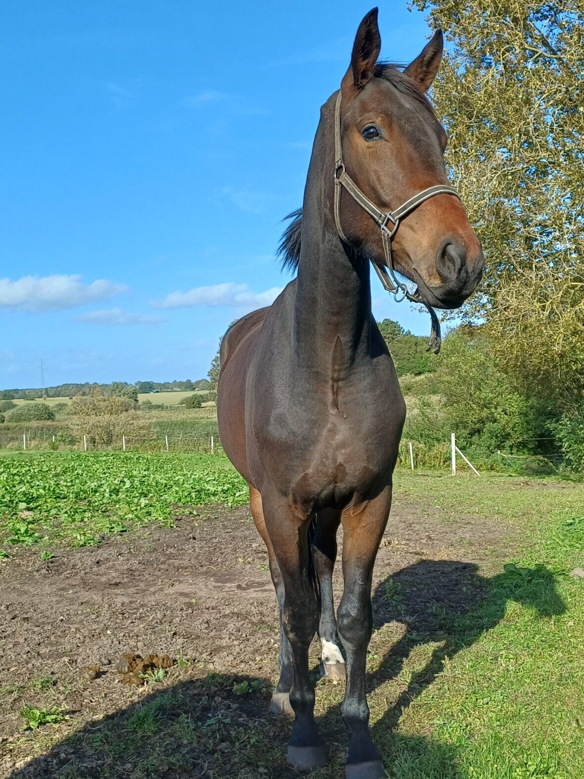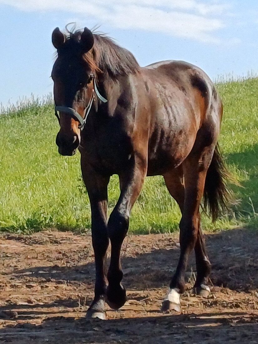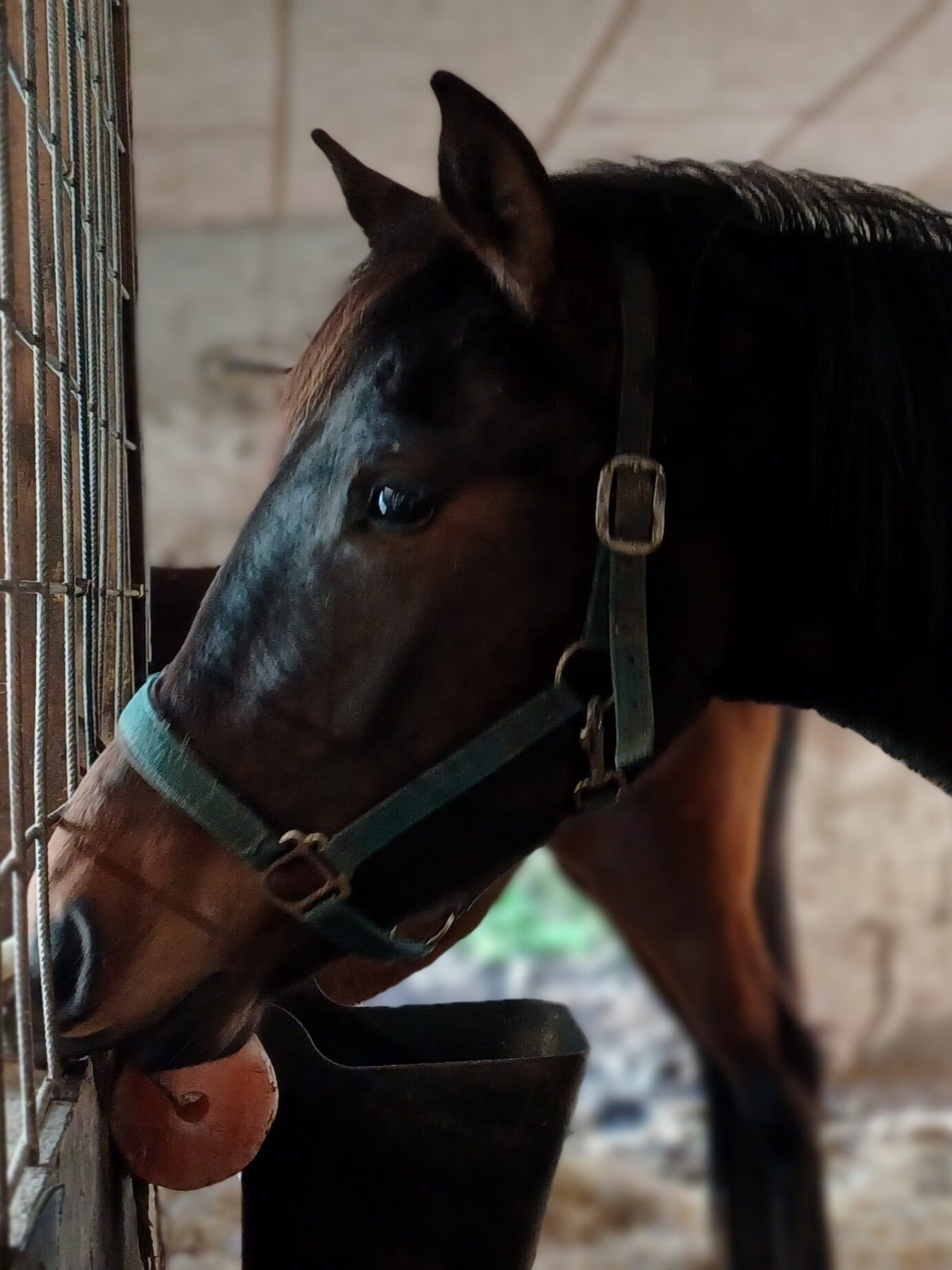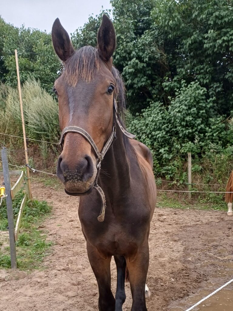 Han er vant til daglig håndtering og kan løfte alle fire ben uden problemer. Han står roligt bundet og tager nye oplevelser med nysgerrighed og ro.